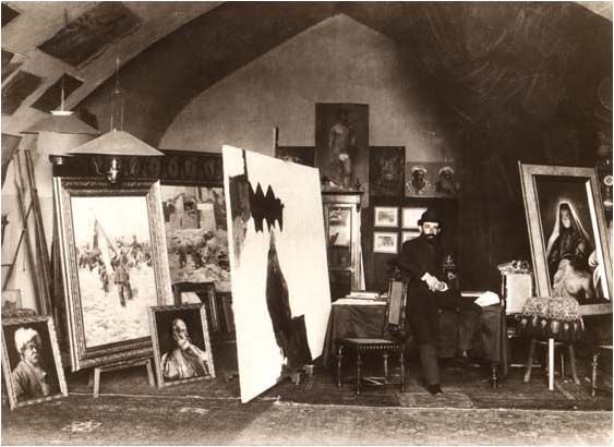 The studio was located on Palace Street, above the photography studio of Alexandre Roinashvili, in a building belonging to the Georgian nobility. In addition to documenting the studio interiors, Alexandre Roinashvili also created an outstanding portrait of Gigo Gabashvili.